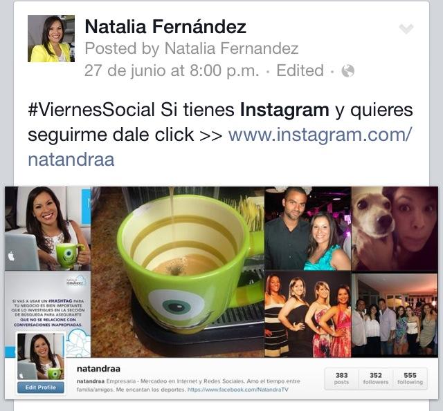 Déjale saber a tus otras comunidades en las redes sociales que pueden encontrarte en Instagram. Si estas comenzando, recuerda compartir con tus fans de Facebook o Twitter el enlace para accesar tu perfil con un llamado a la acción para que te sigan.